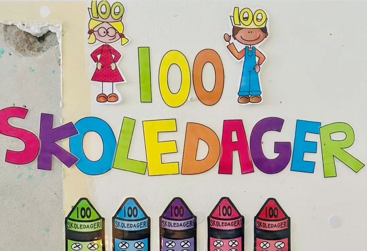 Elevene har sett fram til denne dagen. Hver eneste dag setter de et ekstra kryss på plakaten i klasserommet. Det begynner med ett kryss første skoledag. Deretter blir det 10, 20 og 30. Etter enda flere dager er de nesten framme: 98, 99. Så blir det 100, og da er det fest!